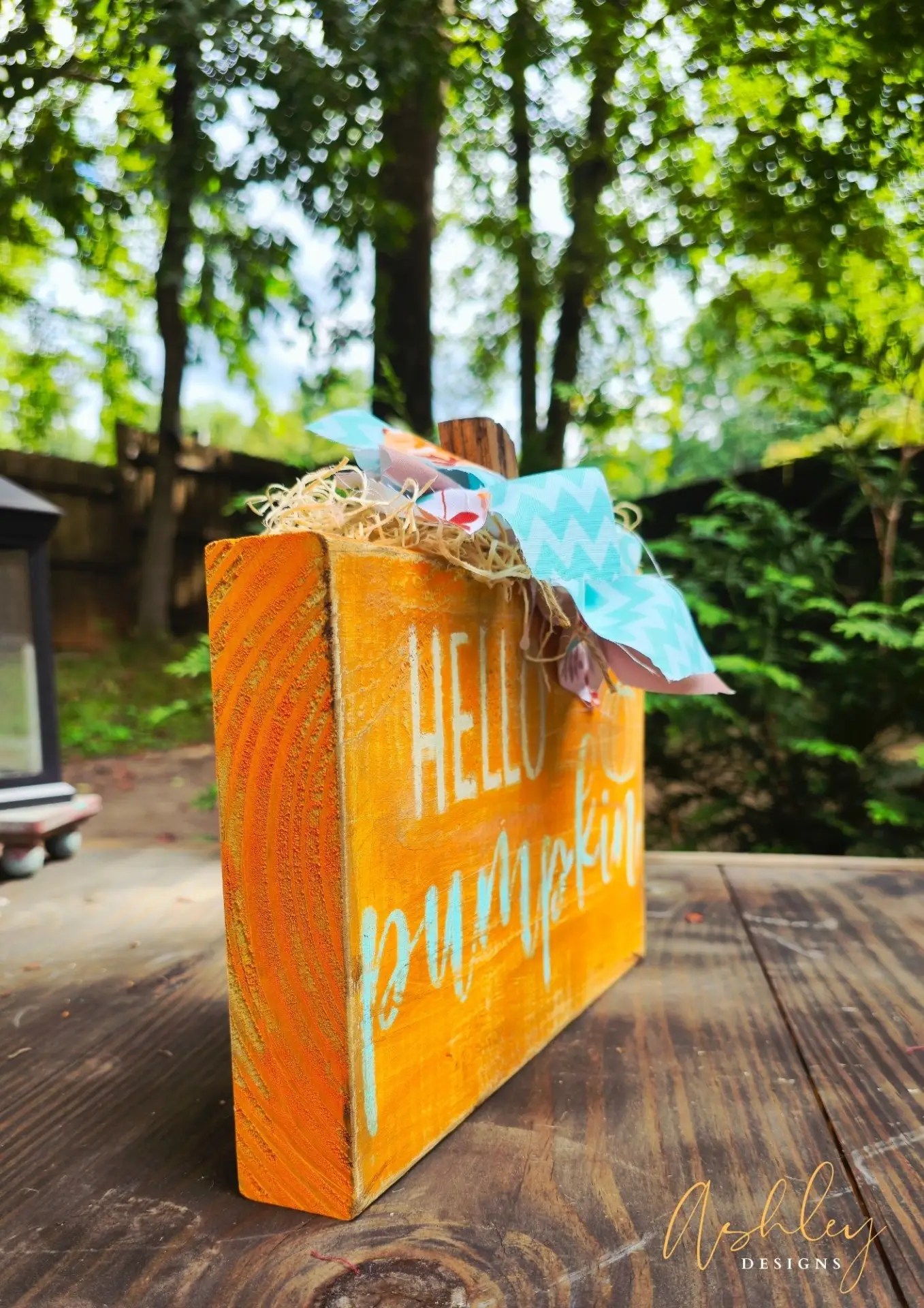 Hello Pumpkin: Welcome guests to your home this fall with this unique, handcrafted wooden sign. Meticulously made from solid wood with a warm, distressed orange finish, this piece captures the cozy charm of the autumn season. The hand-painted “HELLO pumpkin” text, in a soft blue-green, adds a beautiful contrast and a touch of farmhouse style.